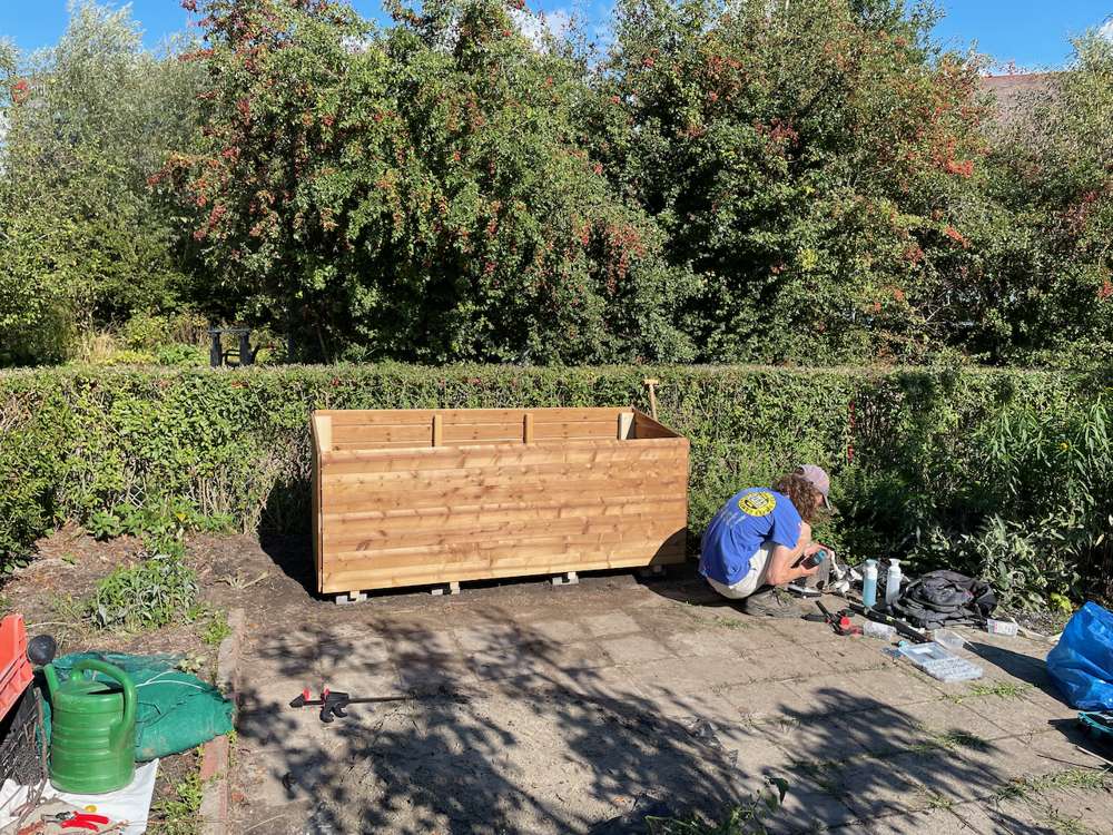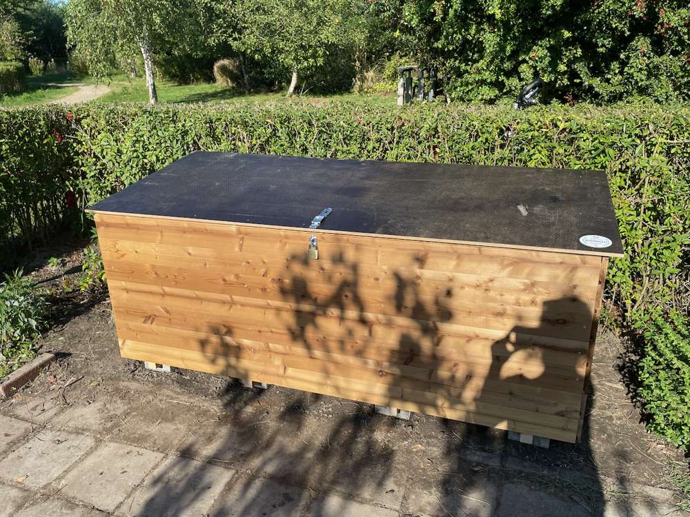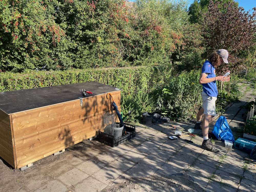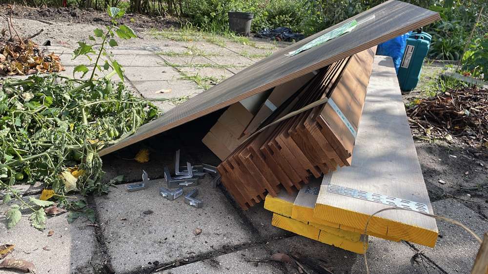 10 September 2022About 6 months after acquiring a plot in a nearby community garden complex, it's time to build a storage box for the gardening tools. Some of them are quite long (more than 1.5m), so we need a wide box to fit them all in.